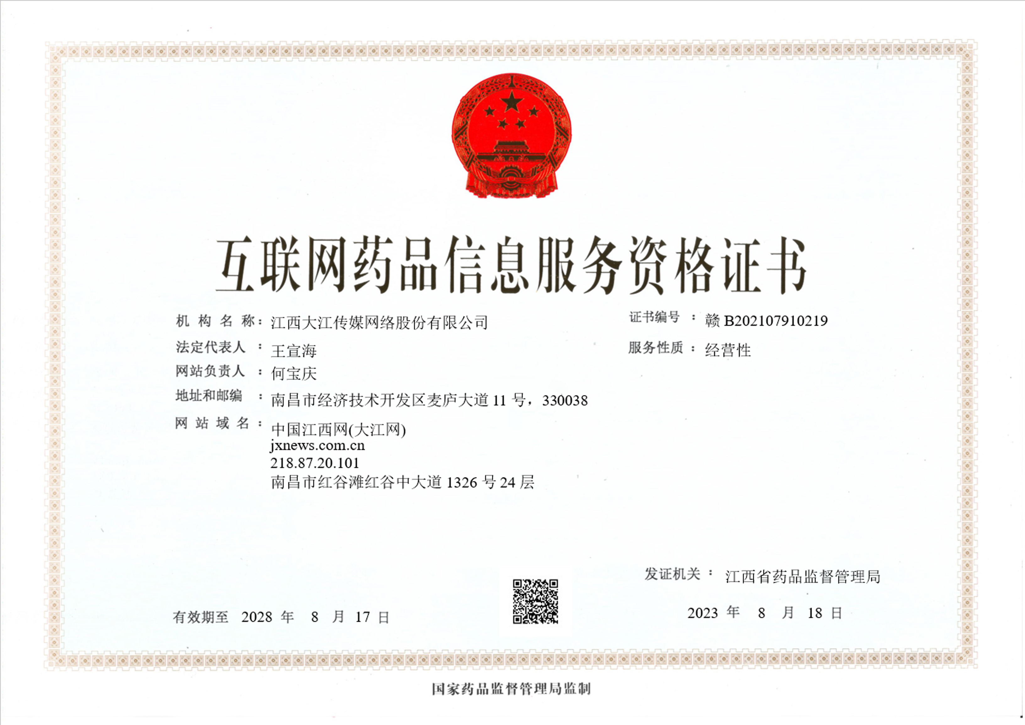 贛網(wǎng)文[2024]1836-022號(hào) (總)網(wǎng)出證(贛)字006號(hào) 網(wǎng)絡(luò)視聽(tīng)許可證1406143號(hào) 互聯(lián)網(wǎng)新聞信息服務(wù)許可證 編號(hào)36120170002 藥品信息服務(wù)證